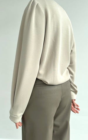 De sweater is vervaardigd uit een duurzame mix van Lenzing™ Modal, gerecycled polyester en elasthane, waardoor hij niet alleen heerlijk draagt, maar ook een bewuste keuze is.