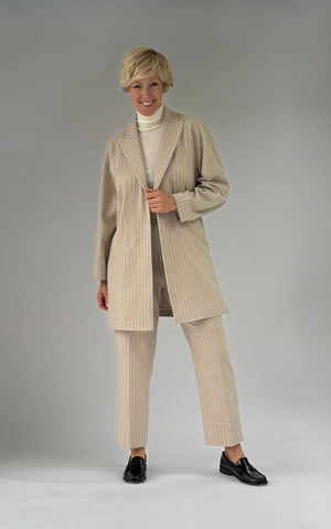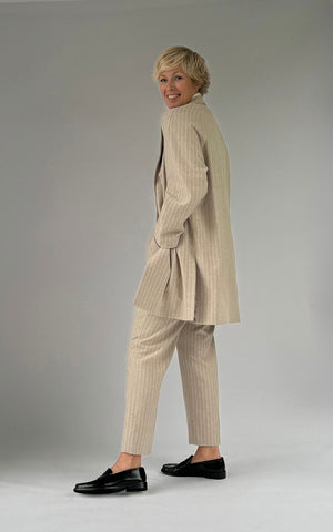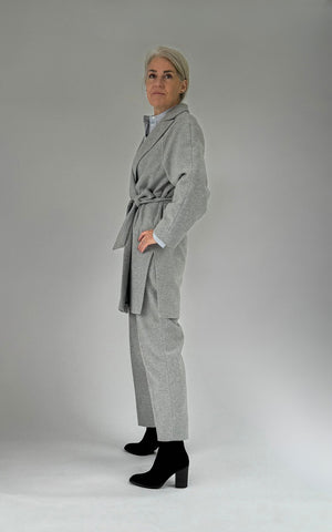 The Bella pant is a classic trouser with tapered legs and a 7/8 length. It features an extra-wide hem, allowing the pants to be lengthened by up to 9 cm. This model is made from a wool blend and is fully lined. The back waistband includes elastic for a perfect fit, and the pants close with a side seam zipper. Pair these trousers with the matching Jones blazer, with or without a tie belt, or with a stylish blouse.