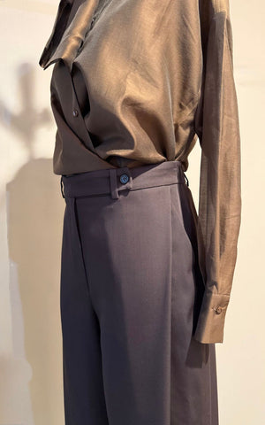 Deze kastanjebruine pantalon van The Make combineert comfort met een verfijnde, moderne uitstraling. De diepe plooi aan de buitenzijde van het been zorgt voor een slank en verlengend silhouet, terwijl de pasvorm mooi in balans blijft tussen chic en ontspannen. De warme kastanjebruine tint is tijdloos en veelzijdig, goed te combineren voor zowel zakelijke als casual looks.