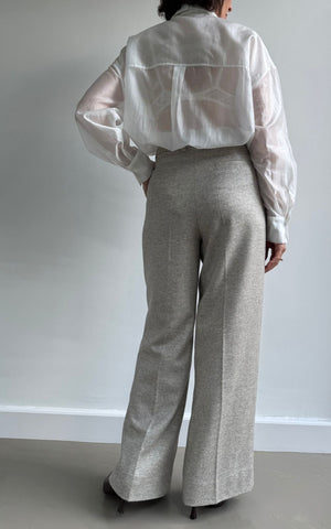Deze stijlvolle high-waist pantalon met wijde pijp in een prachtige tweed stof met 64% wol combineert comfort met verfijning. De broek is compleet gevoerd en heeft daardoor een zeer comfortabel en warm gevoel. De bandplooi aan de voorzijde geeft de broek extra structuur en een tijdloze uitstraling.