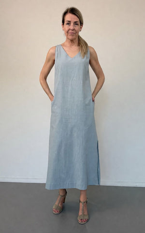 Twee verfijnde plooien op het voorpand zorgen voor coupe en geven de jurk net dat beetje extra karakter. Een subtiel vrouwelijk detail in de jurk is de split in de zijnaad, terwijl de zakken in de zijnaad zorgen voor een comfortabele look.